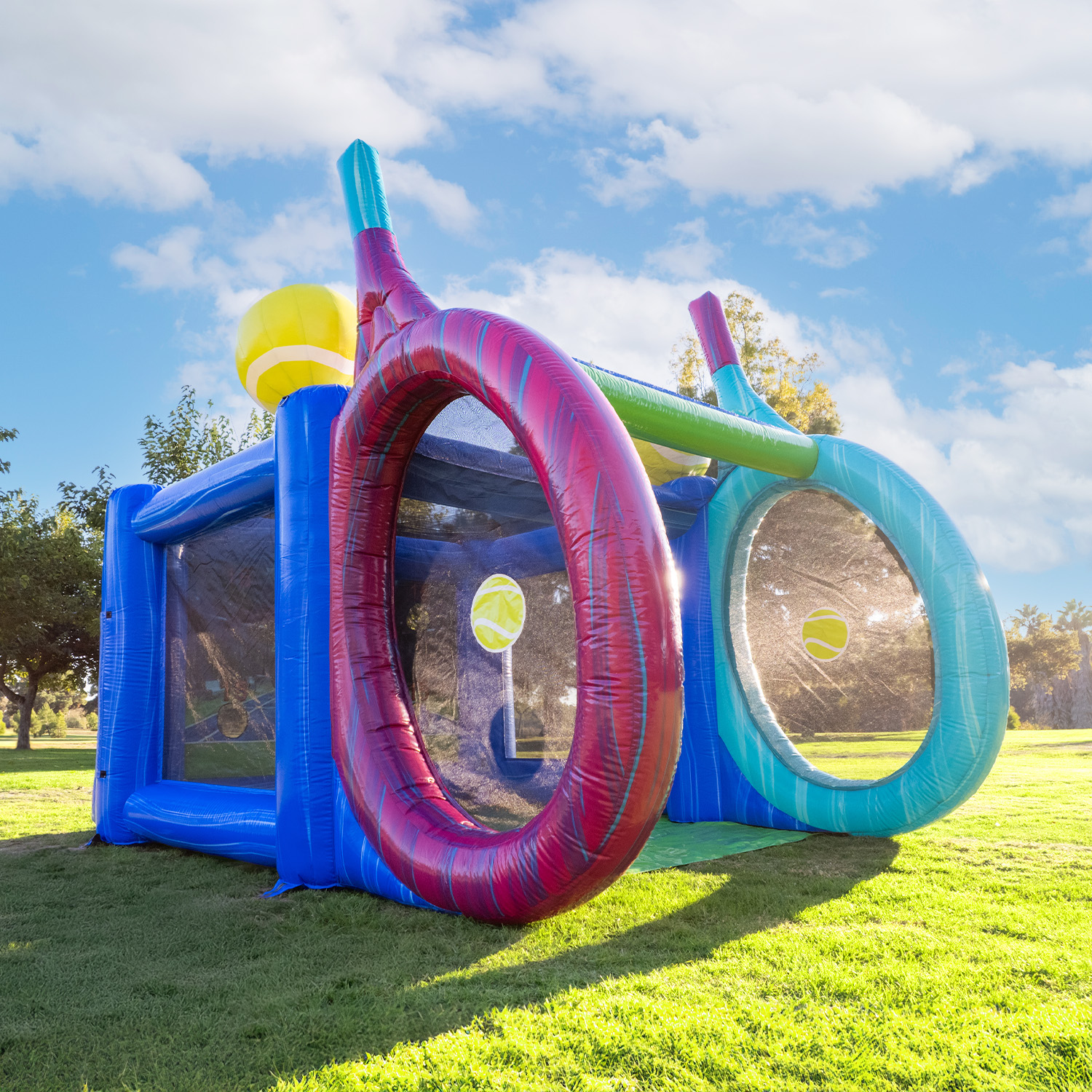 | Shhhhh - the match is about to start! Well, actually, for this tennis game, you can make as much noise as you like. Channel your inner tennis pro with our inflatable tennis game, featuring a variety of fun challenges. It is suitable for promotional events, team-building activities, incentive events, sporting events, corporate events, and much more. Graphics and colors will amaze you!!
